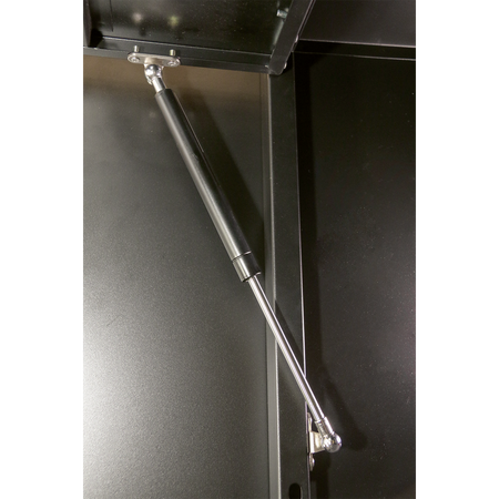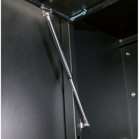 For use with Model No's APMS01 and APMS03 Floor Cabinets. Supplied with appropriate fixings to make integral self-supporting unit. All steel construction with a graphite powder coated finish. Brushed aluminium door handle. Lift-up door supported on gas struts. High quality lock with two keys. Offers fixing for Model No. APMS10 back panel.