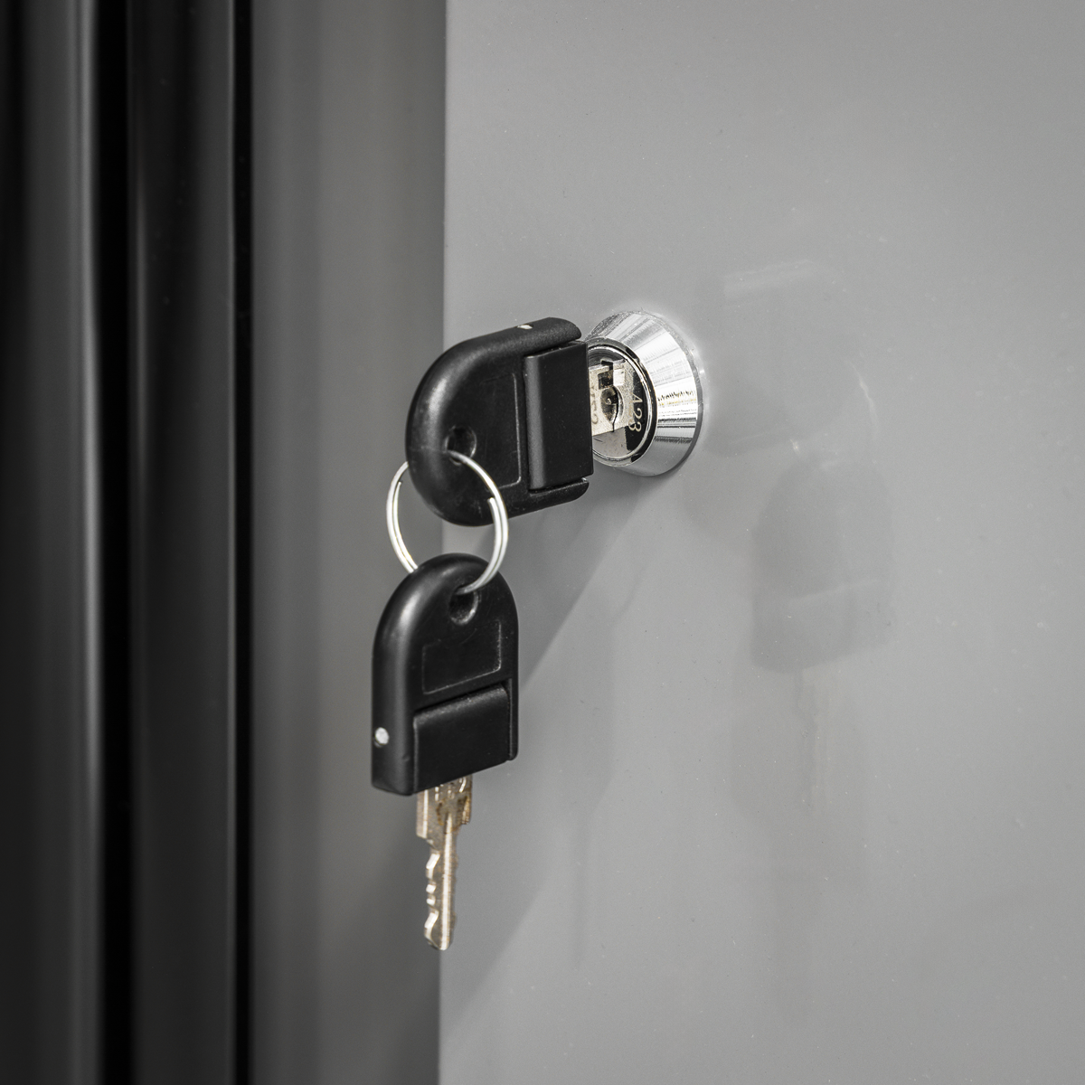 N.B. ILLUSTRATED WITH OPTIONAL WORKTOP - Don't forget to order your choice of rubber wood or stainless steel separately. Use as part of a complete garage storage system or as an individual storage unit. Supplied with an adjustable shelf. High quality lock with two keys.