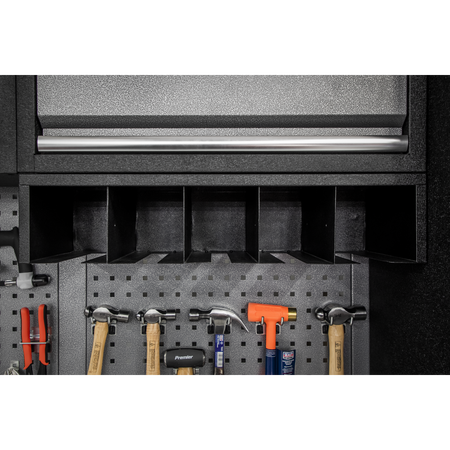 • Five open fronted bays make the power tools easily accessible.