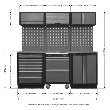 APMSSTACK12SS Superline PRO Storage System with Stainless Steel Worktop 2.04m