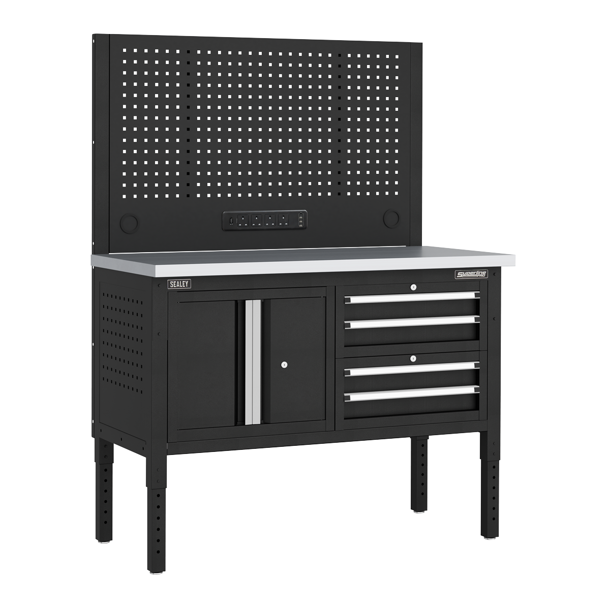 APMWB50COMBO1SS Superline PRO Modular Workbench with 4 Drawers & Cupboard Stainless Steel Worktop 1265mm