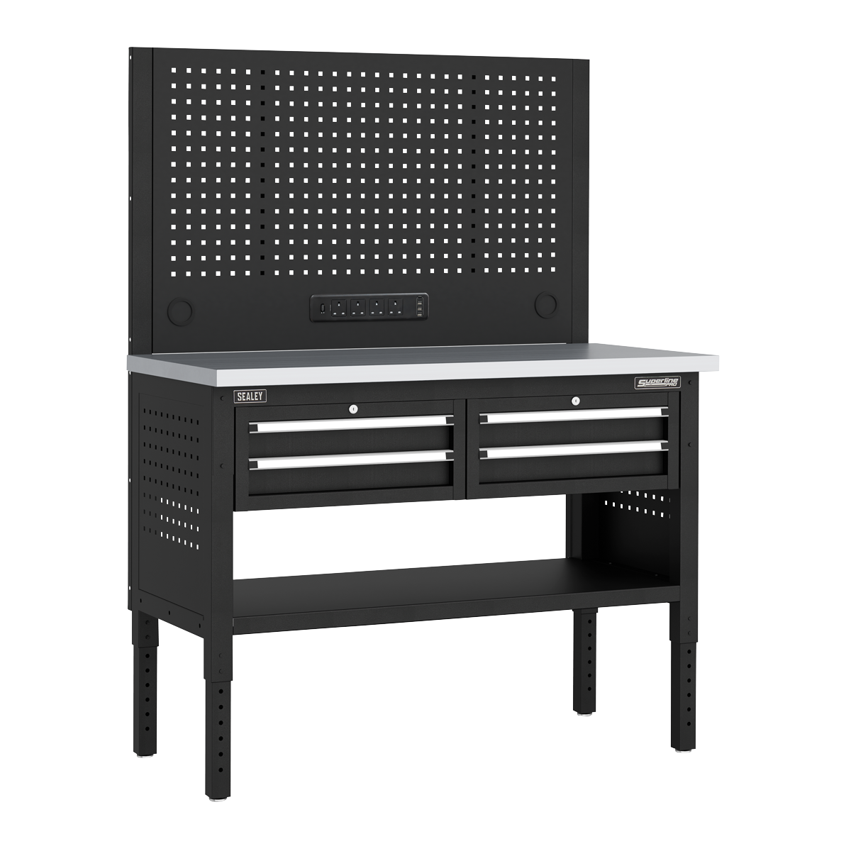 • POWER - Built-in power bar featuring 4 x BS sockets, 1 x USB-C and 3 x USB ports (for full specification see Sealey Model No. EL34USBB).