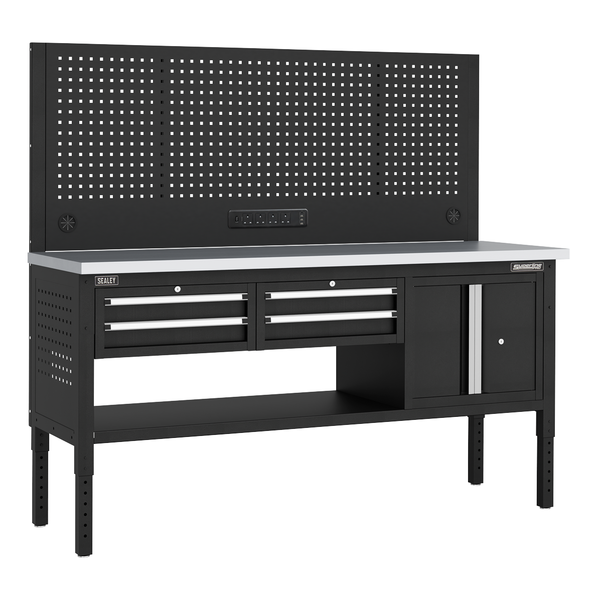 APMWB72COMBO1SS Superline PRO Modular Workbench with 4 Drawers & Cupboard Stainless Steel Worktop 1830mm