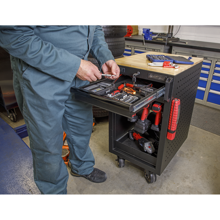 • 450mm Workshop trolley capable of holding eight power tools.