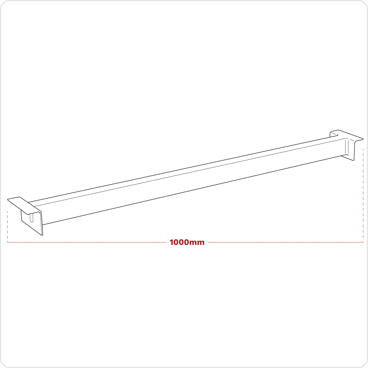 Clips between front and rear beam and prevents MDF panel sagging excessively. Recommended for applications where shelves are loaded towards their full capacity for prolonged periods. Supplied individually.