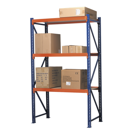Shelving unit with upright frames and cross beams. 900kg Capacity per level. Designed for use with chipboard shelving (not included). Optional Safety Locking Pins - Pack of 12. Order Model No. APR/SH12. Optional Chipboard Panel Supports. Order Model No. APR/CPS602.