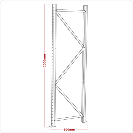 Metal frames consist of uprights joined by spacers and diagonal struts. The uprights are supplied with metal base plates that may be fastened to the floor. Uprights are finished in heavy-duty coating to prevent corrosion and maintain appearance of shelving. Frames supplied individually.