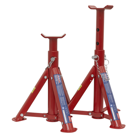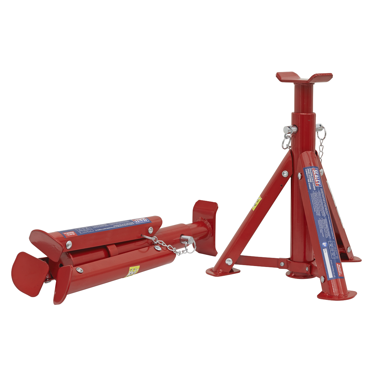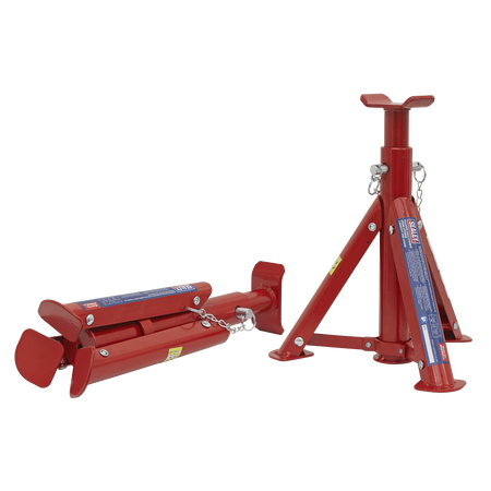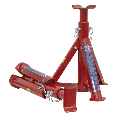 Folding design saves space and makes these axle stands ideal for occasional use. Welded steel construction for increased strength and safety. Folding design for space efficient storage. Fitted with double-locking safety pin. Sold in pairs.