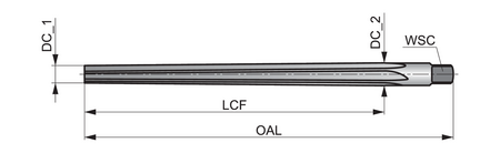 Taper pin hand reamer with straight flutes and a square drive, small end diameter 4.90mm with an overall length of 100mm, a flute length of 73mm and 6.36mm large end diameter, according to DIN 9 standard for reaming pin holes with a 1:50 taper into which 5.00mm taper pins will fit, HSS with bright-steam tempered finish for machining free machining, plain carbon and alloy steel, malleable cast-iron, wrought and cast aluminium and copper or copper alloys