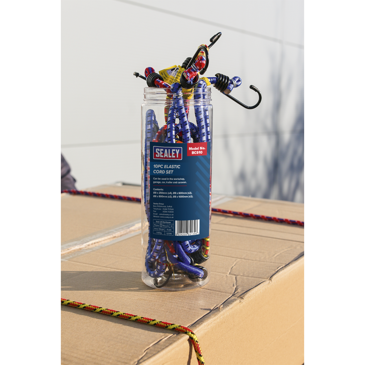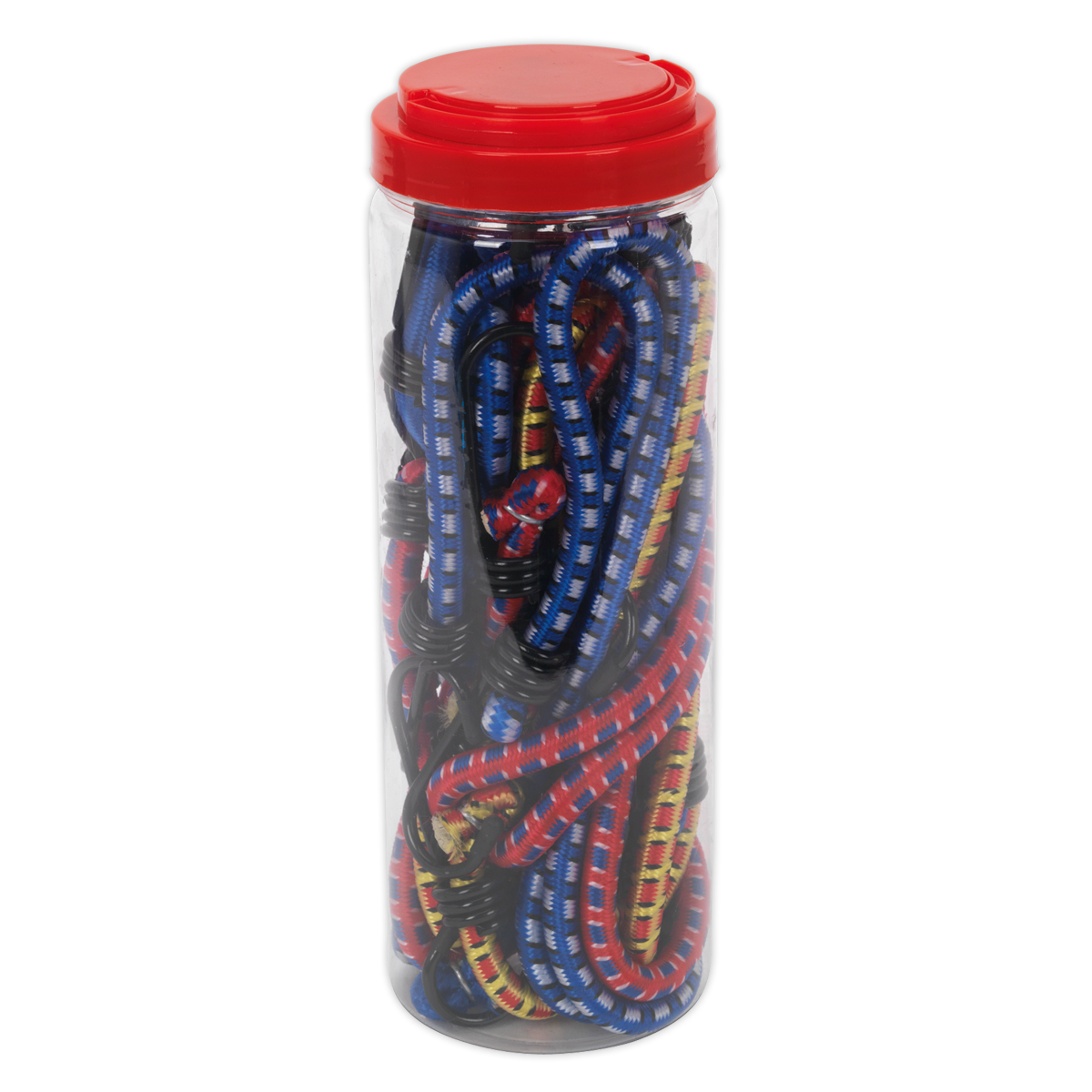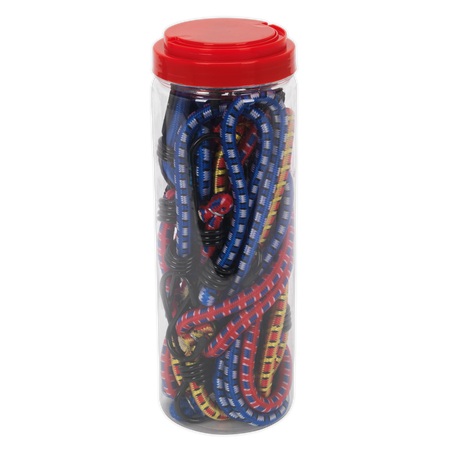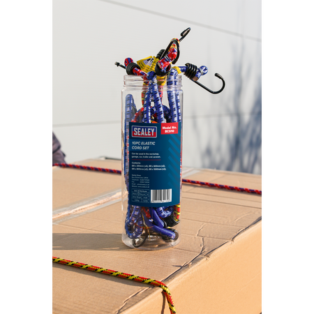 Bungee cords make tying items down quick and easy. Can be used in the workshop, garage, car, trailer and caravan. Not suitable for supporting loads. Packaged in a round plastic tube.