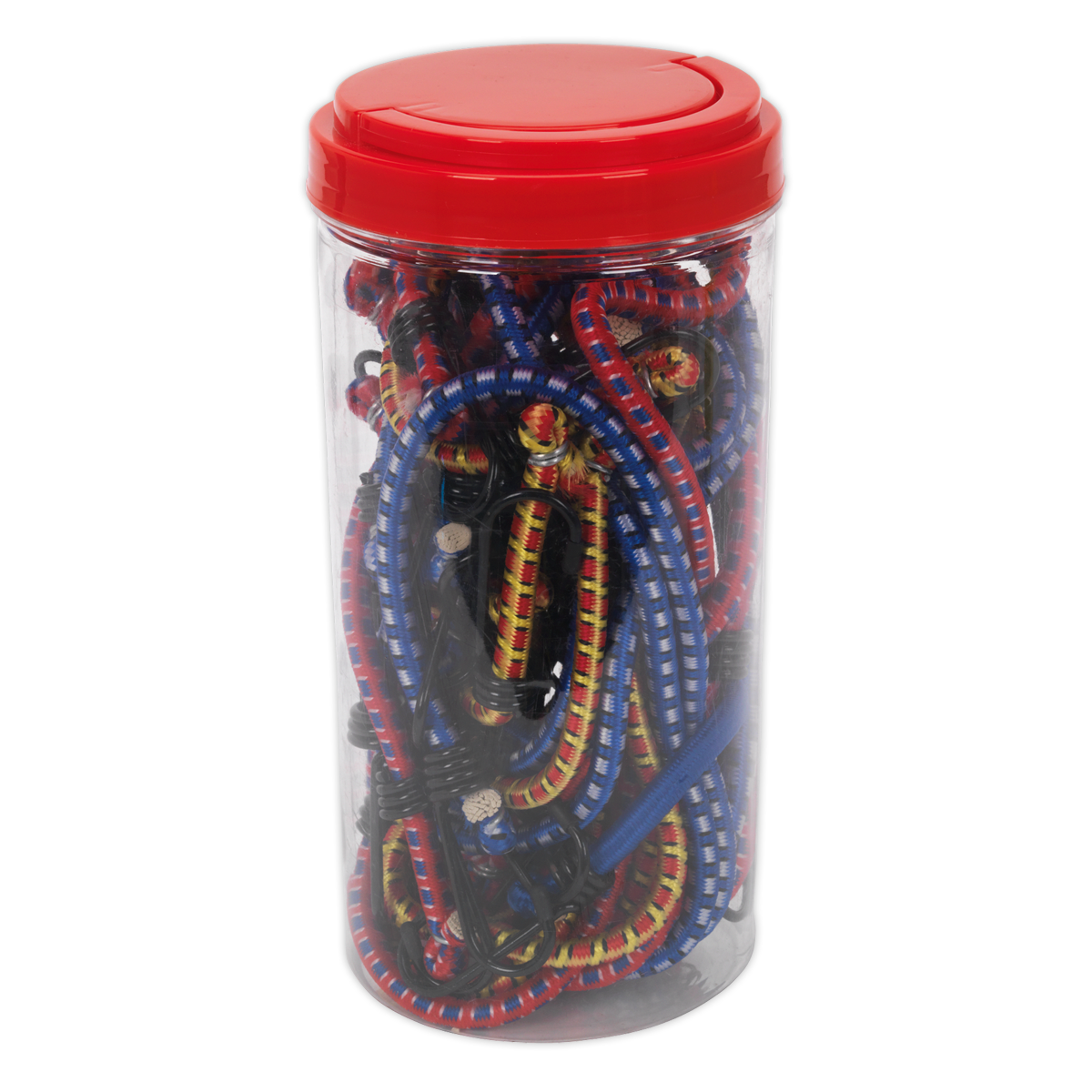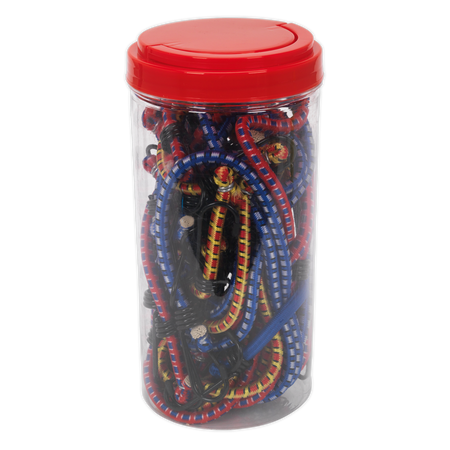 Bungee cords make tying items down quick and easy. Can be used in the workshop, garage, car, trailer and caravan. Not suitable for supporting loads. Packaged in a round plastic tube.