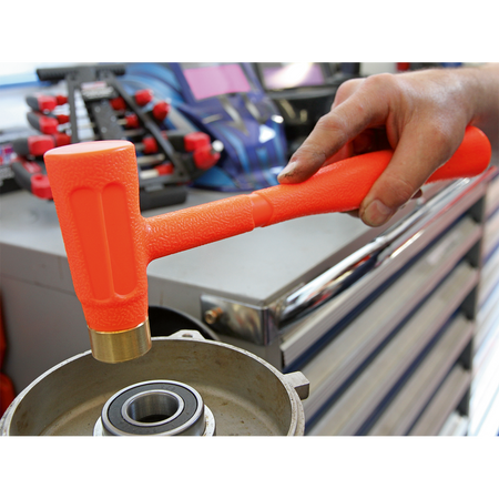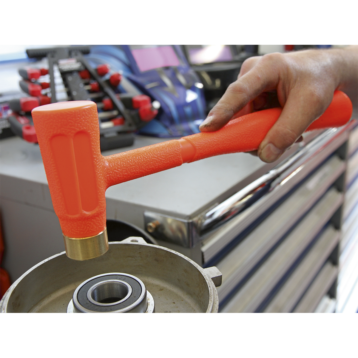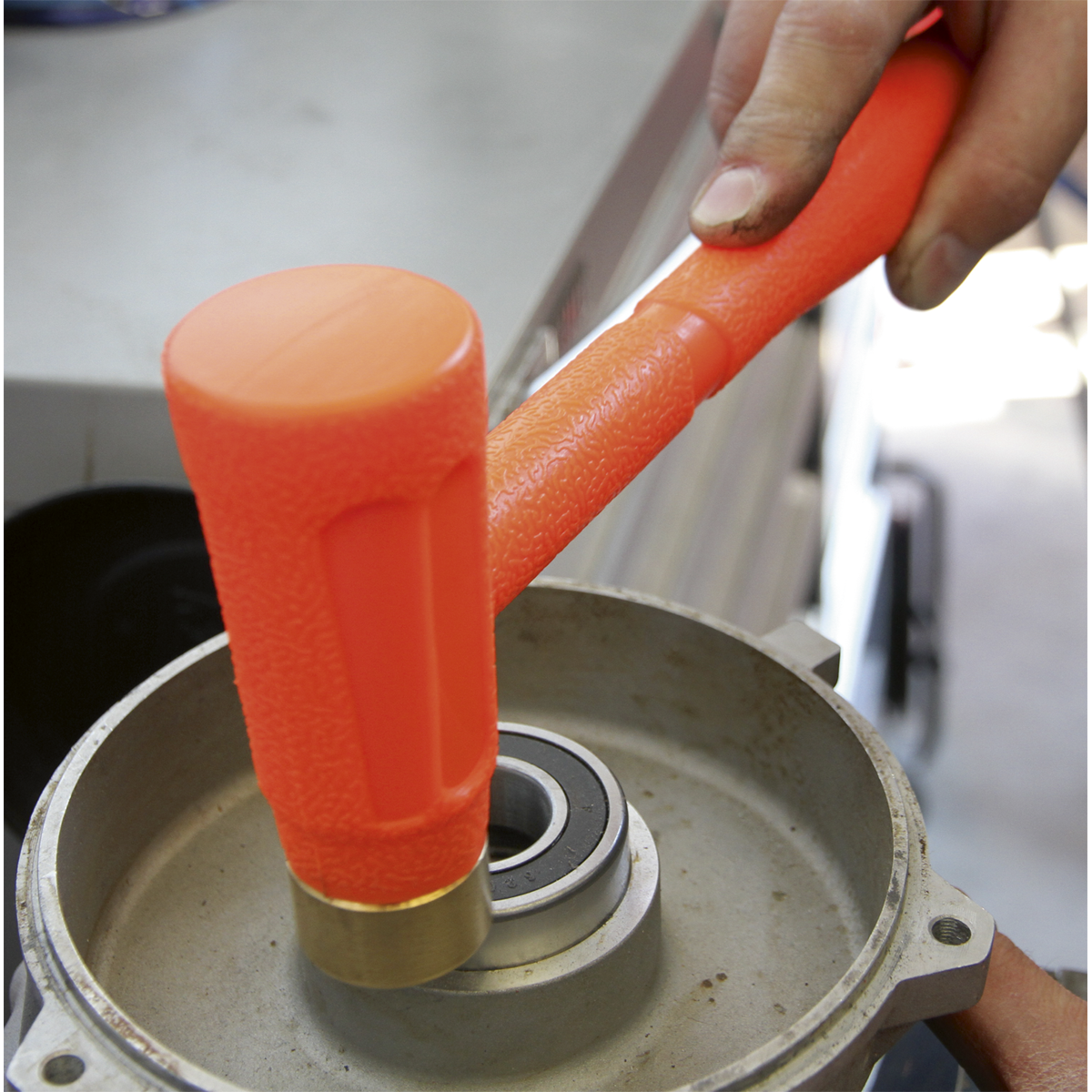 Brass faced shot-loaded heads produce non-sparking, controlled and effective blows without rebound. Features comfortable rubber grip.