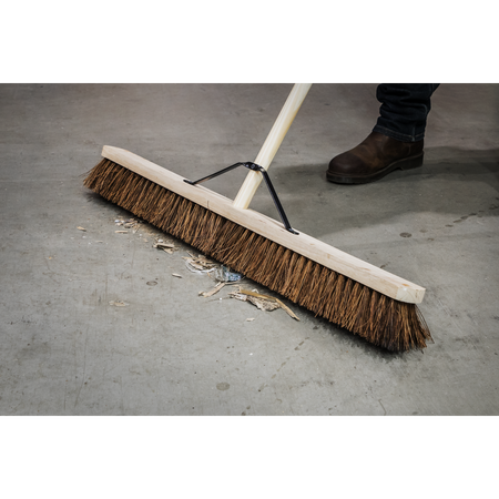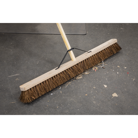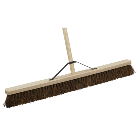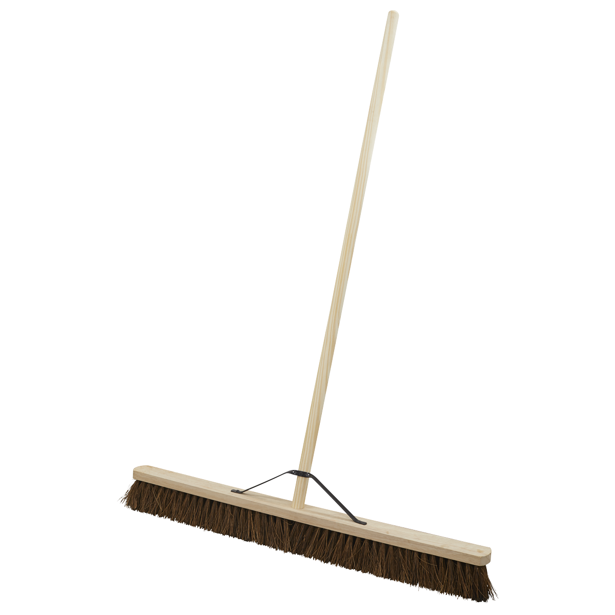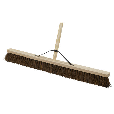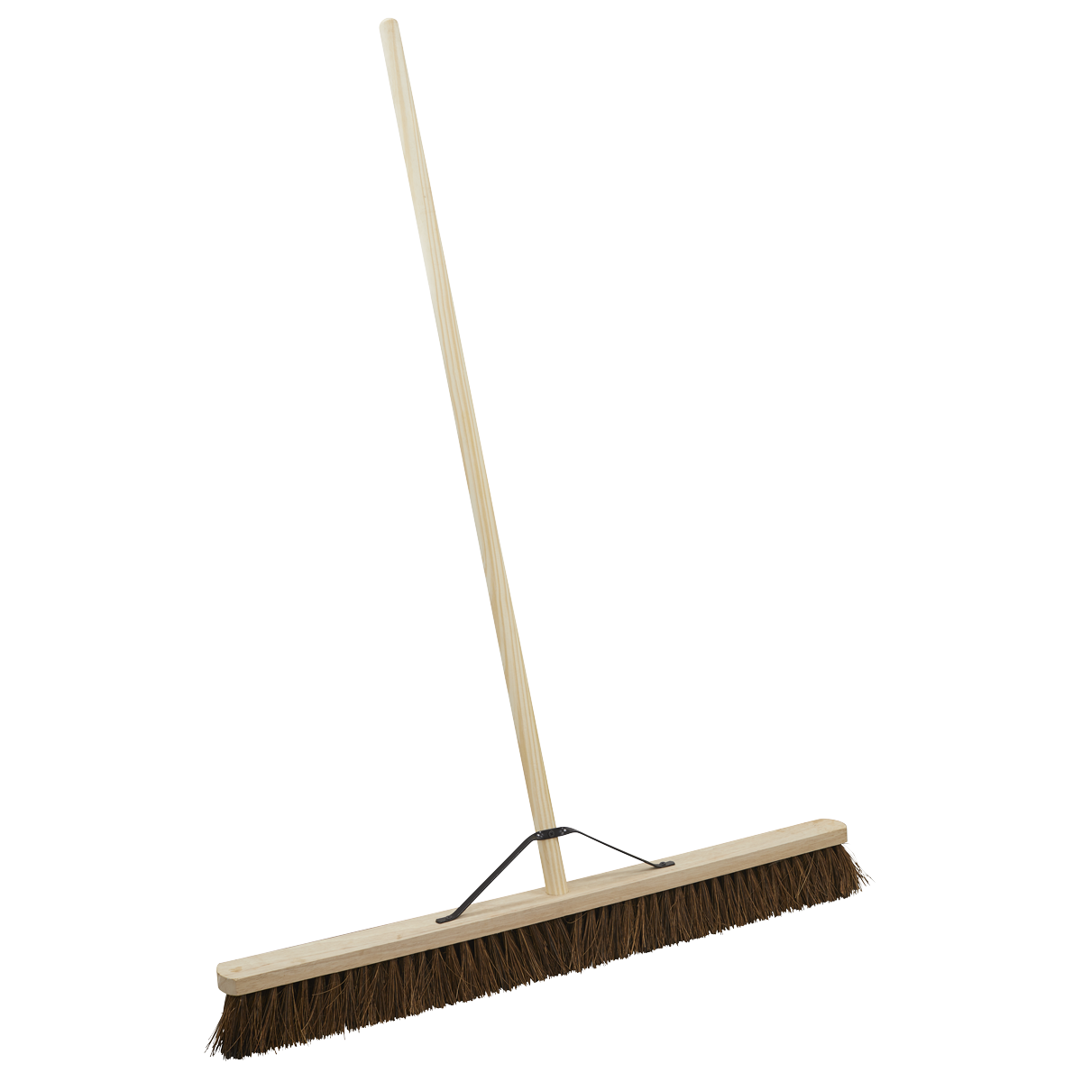 36"(900mm) Hard bristle broom fitted with metal handle strengthening support. Ideal for indoor or outdoor use.
