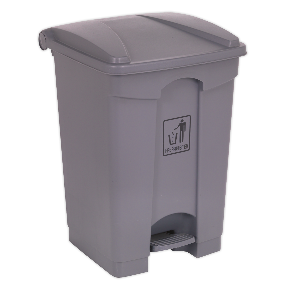 Manufactured from heavy-duty polypropylene. Square design allows unit to sit flush against almost any wall, ideal for where space is limited. Fitted with plastic foot pedal for hands-free operation and carry handle.