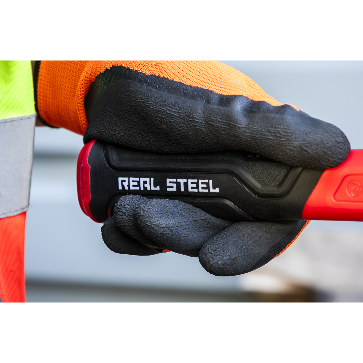 Manufactured from drop-forged fine grained carbon steel. Fibreglass shaft with graphite core for improved strength and durability. Textured rubber grip for secure handling. Manufactured and approved to BS 876.
