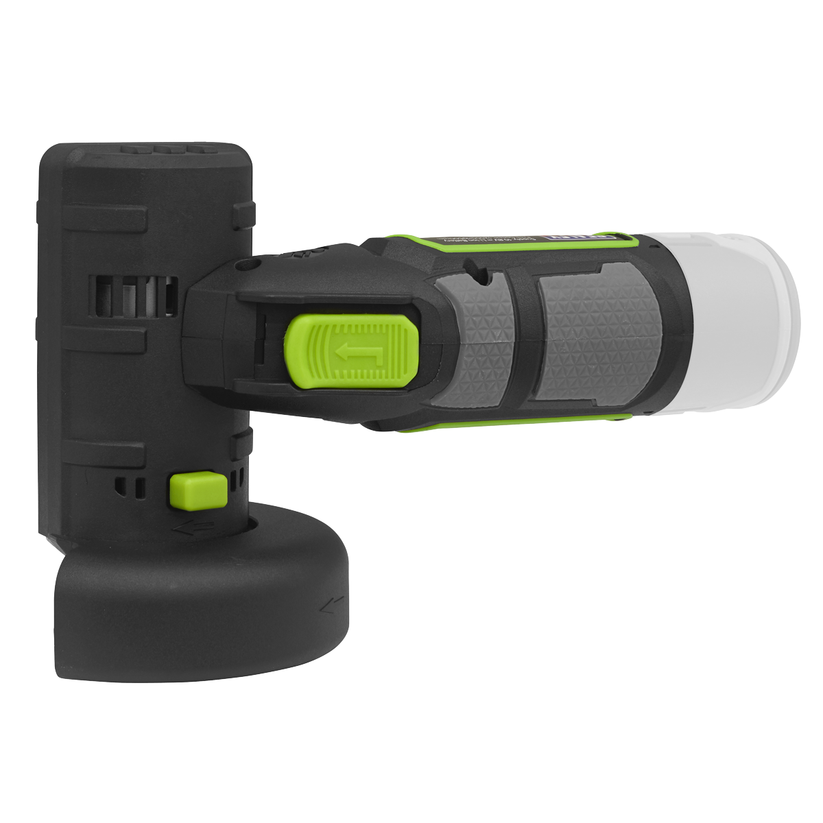 Compact, lightweight cordless angle grinder - body only. Comfortable housing with soft grip to help reduce vibration. Variable speed with six settings. Blade guard that can be adjusted and spindle locking button. LED Battery light indicator. Supplied with hex key for easy blade switching. Disc not included. See www.sealey.co.uk for our range of grinding /cutting discs. Requires compatible 10.8V 2Ah or 4Ah battery and mains charger, sold separately.,• Part of the SV10.8 Series powered by fast charging high output lithium-ion batteries, designed to make everyday tasks quick and easy.