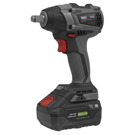 Powerful, lightweight cordless impact wrench. Durable composite housing with soft grip for added comfort. Brushless motor, which gives an improved performance and requires less maintenance than the brushed equivalent, giving you a more efficient, longer lasting tool. Produces torque of up to 350Nm. Variable speed trigger switch for easy control. All metal gear construction for ultimate durability and performance. Built-in LED worklight. Forward, reverse and trigger-lock. Supplied with belt hook for safer storage whilst not in use. Requires compatible 20V battery and mains charger, sold separately.