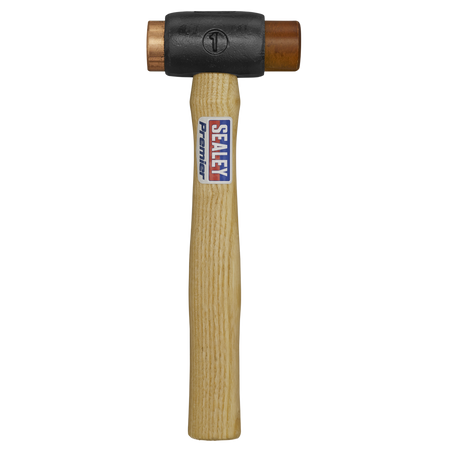 • Malleable iron head fitted with one pure electrolytic copper face and one compressed buffalo hide face.