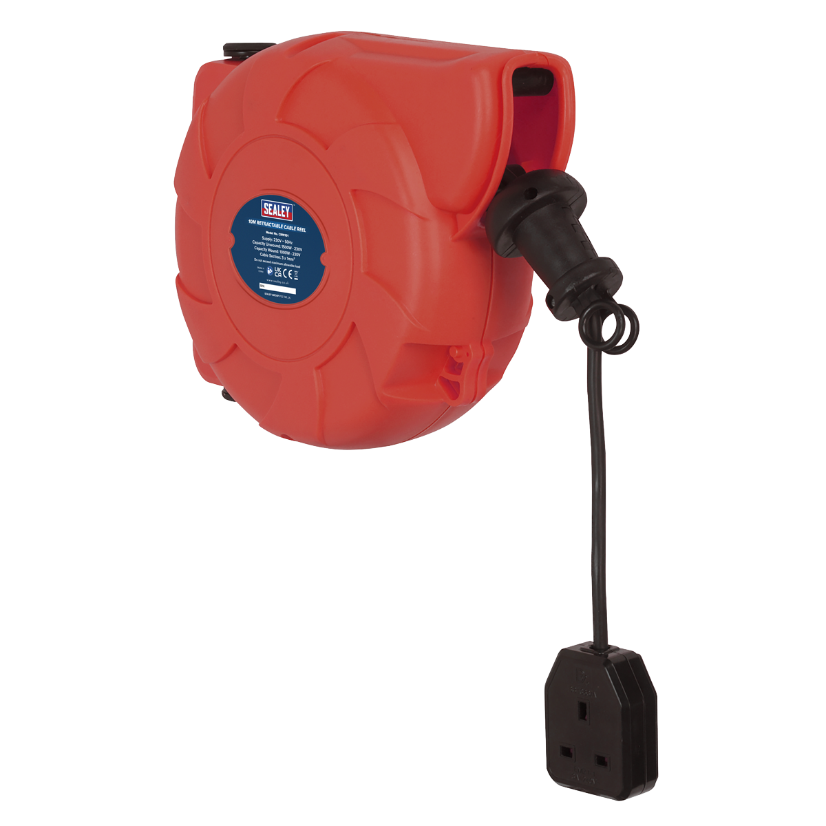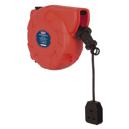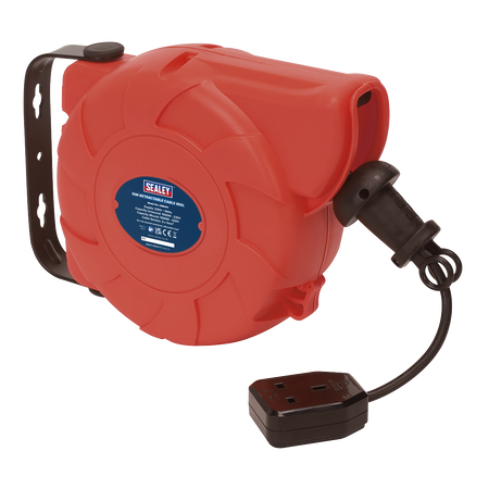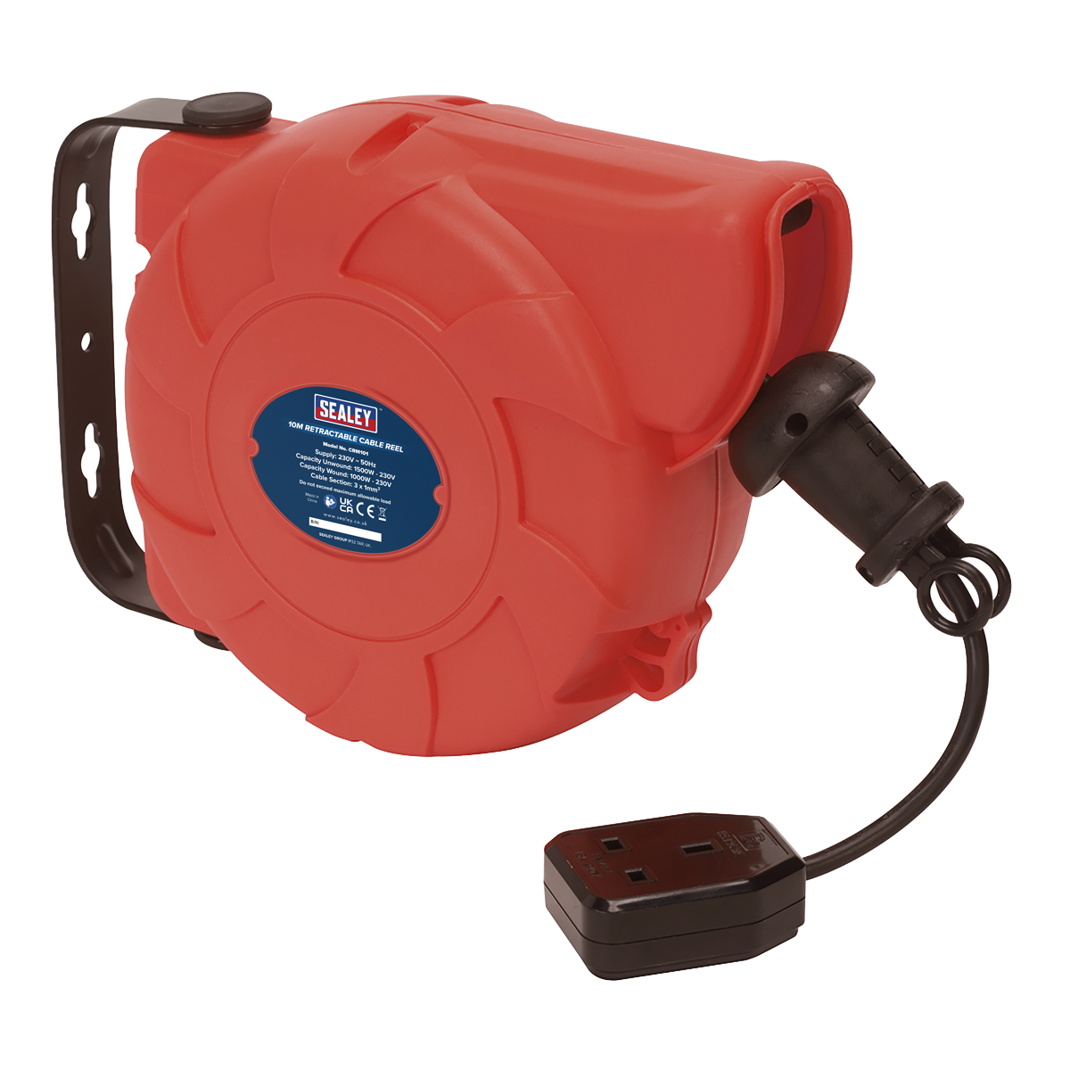 Single socket outlet with LED power indicator. Features integral manual thermal trip switch to prevent overload. Built-in bracket rotates 180° and can be used to mount to a wall or ceiling. Retracting cable reel operated by simple pull and release action. Hard-wearing composite case prevents damage to the cable and eliminates potential trip hazards.