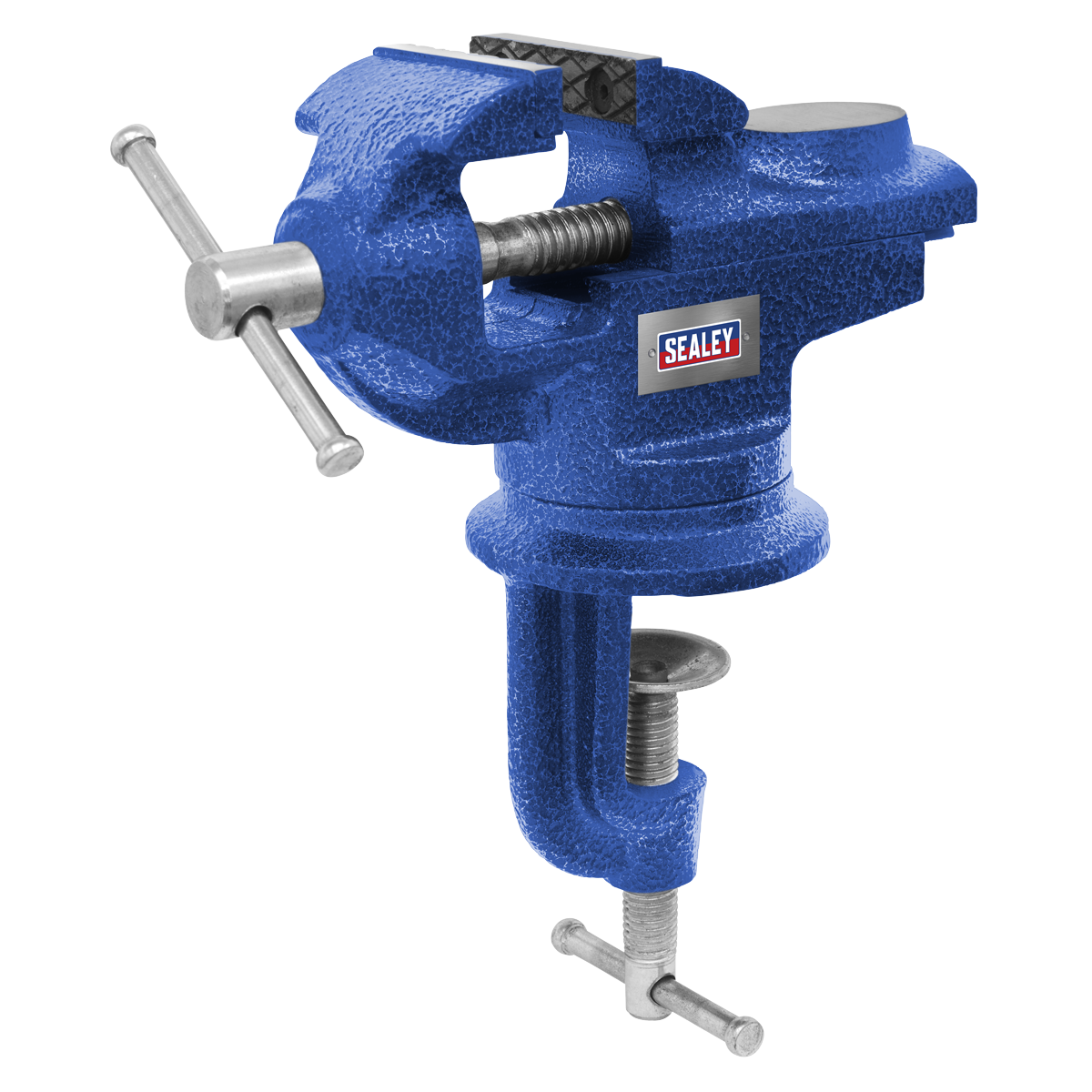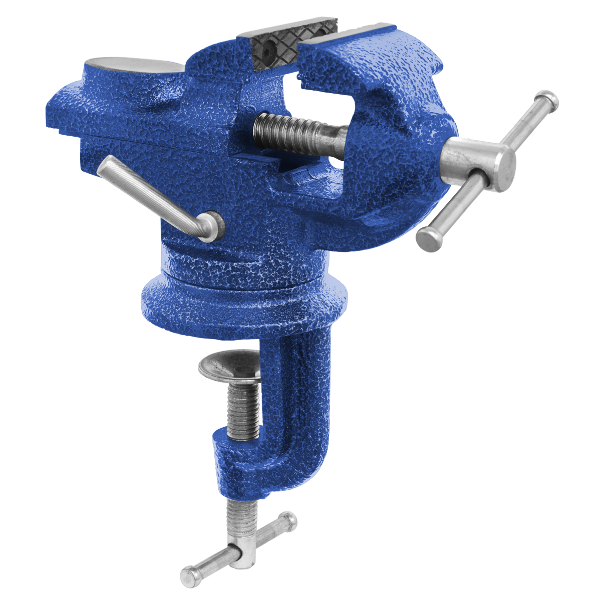Portable vice, ideal for home, workshop and professional use. Perfect for woodworking, sawing, drilling, metalworking, sanding or planing. 360° Swivel base, perfect for a wide range of clamping angles. Rotate the vice into the perfect position to work on. Fitted with a bench clamp, making it quick and easy to install and remove from any workbench.