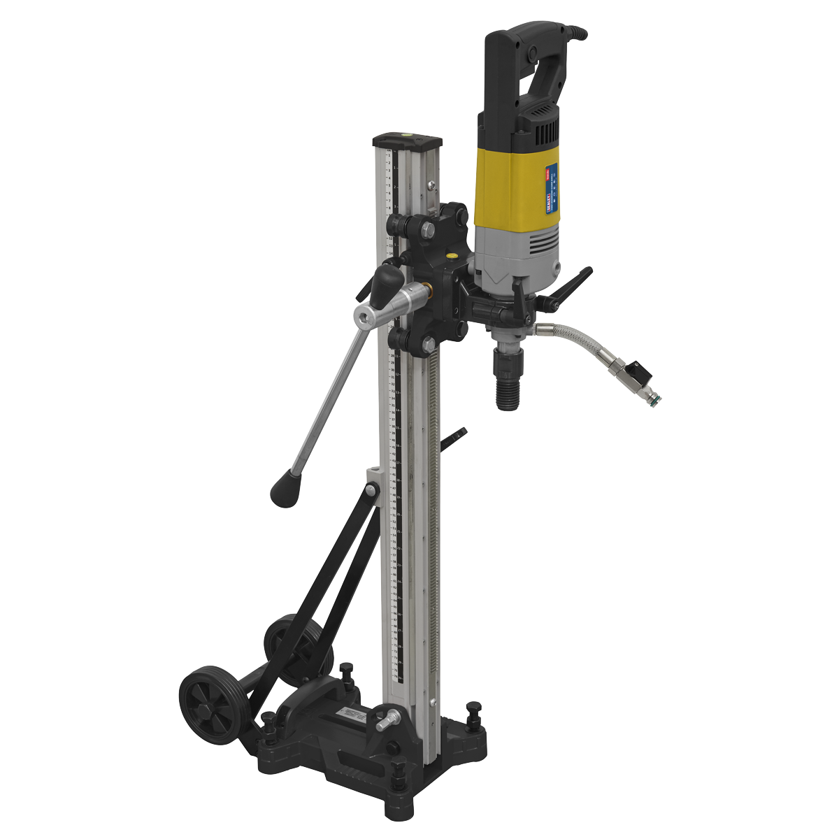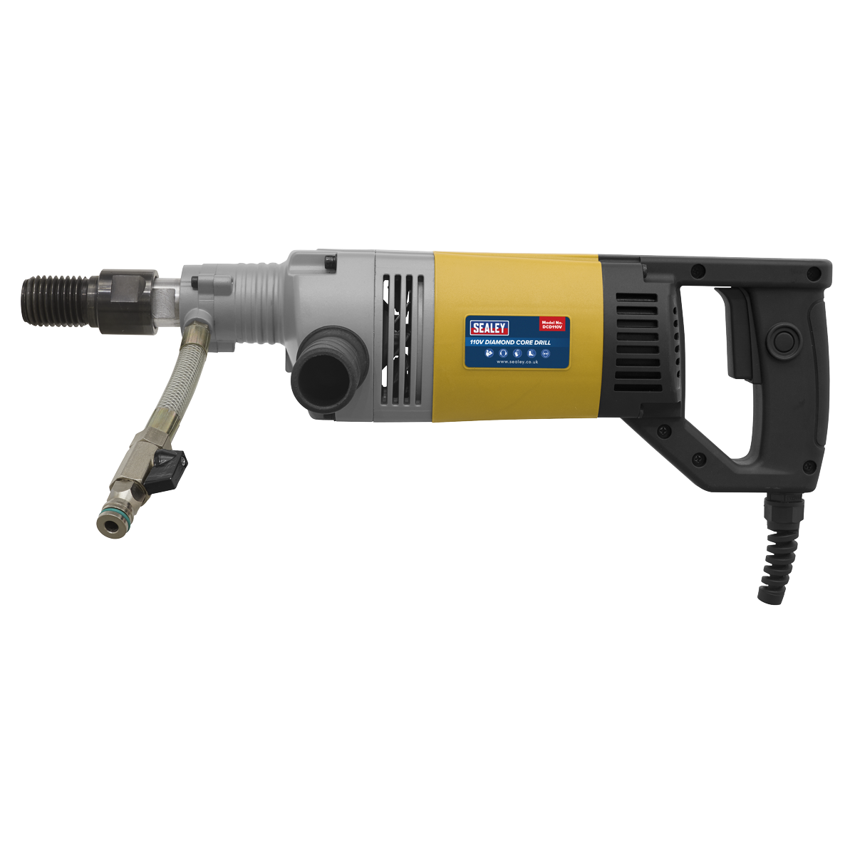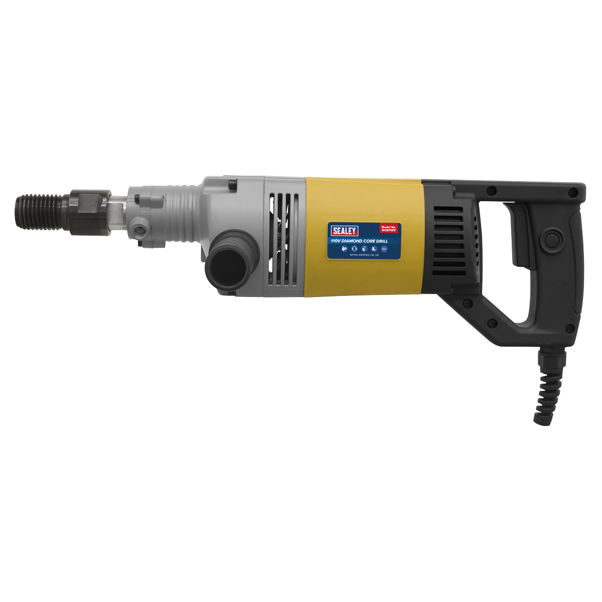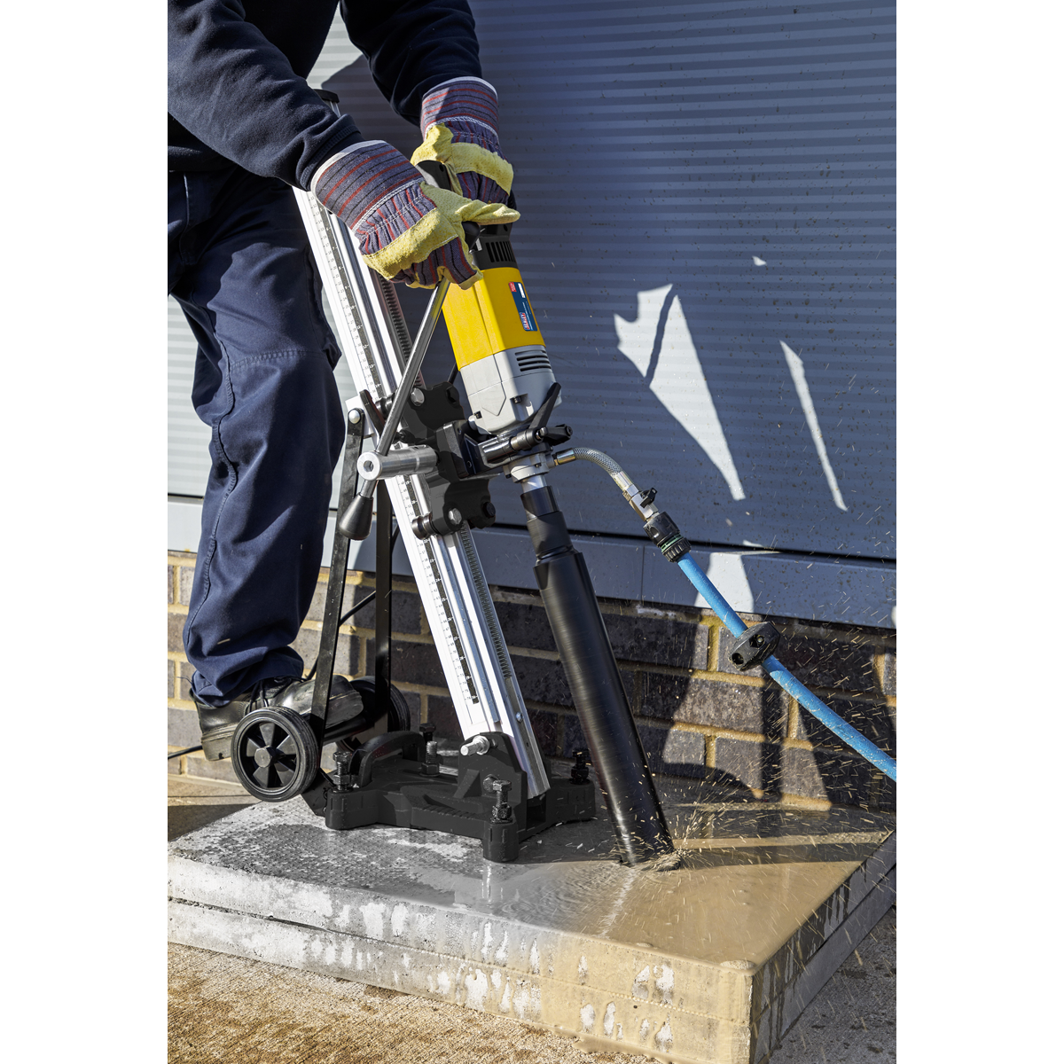 Manufactured using high quality components for performance and reliability. Lightweight and compact unit. Fitted with soft start and overload protection. Designed for use in construction and other applications when working with masonry and concrete. Supplied with adaptor, water cooling kit and side handles. Can be used independently or with optional Model No. DCDST Diamond Core Drill Stand.