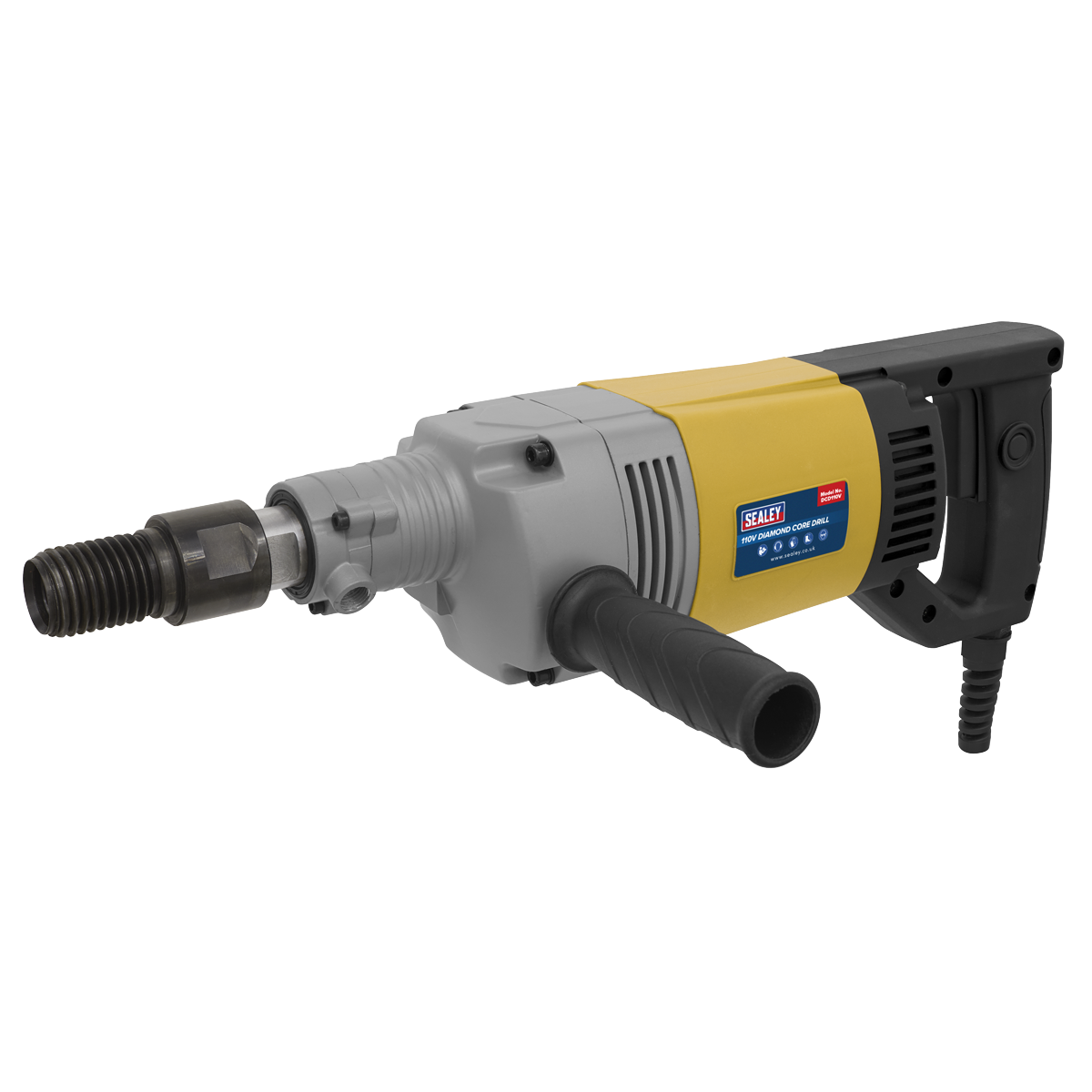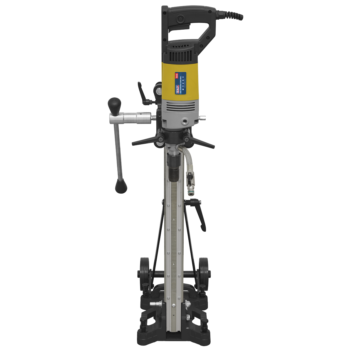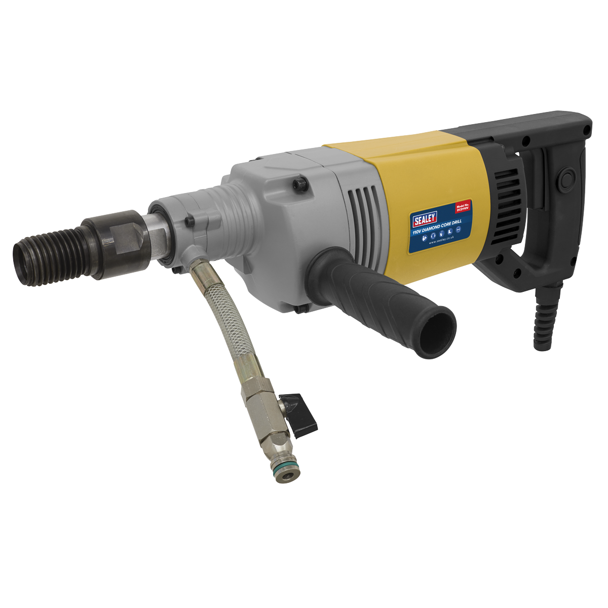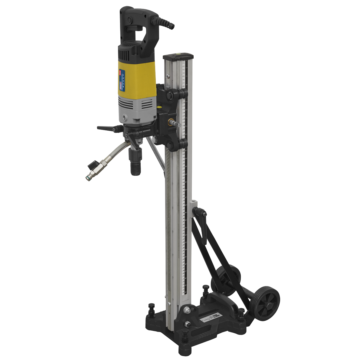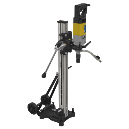 Manufactured using high quality components for performance and reliability. Lightweight and compact unit. Fitted with soft start and overload protection. Designed for use in construction and other applications when working with masonry and concrete. Supplied with adaptor, water cooling kit and side handles. Can be used independently or with optional Model No. DCDST Diamond Core Drill Stand.