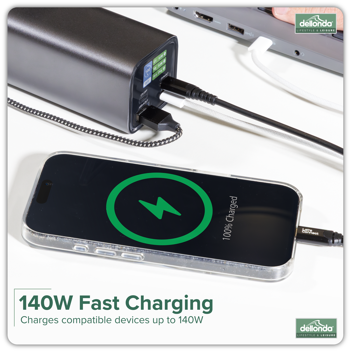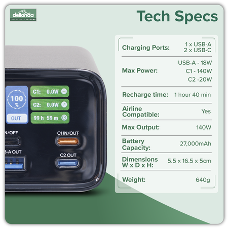 DL168 Dellonda Portable Power Bank 140W 27000mAh