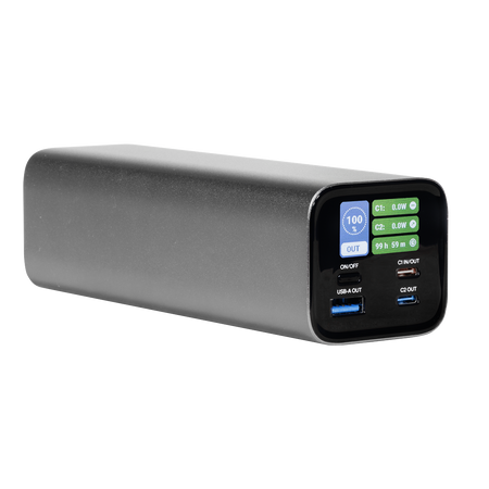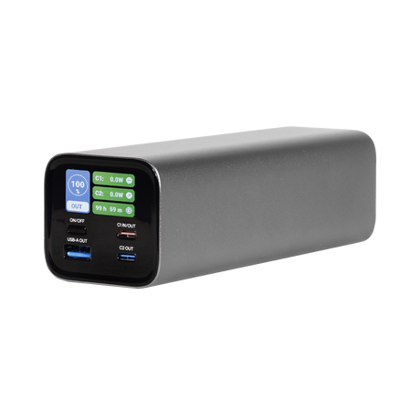 Features a 27000mAh battery capable of providing enough power to charge an iPhone 16 more than 5 times, an iPad Air 13" over 1.5 times or providing a MacBook Pro 14" with 90% charge. Utilises the latest PD3.1 technology with a maximum output of 140W. Also features a USB-C output and USB-A output capable of 20W and 18W charging respectively. Easy-to-read colour display shows current battery level, individual USB output usage, predicted charge time and other data. Supports a 140W fast charging input, resulting in minimum charge times of 1hr 40mins for a full charge. Sleek design with compact dimensions weighs just 630g, perfect for use on the go.