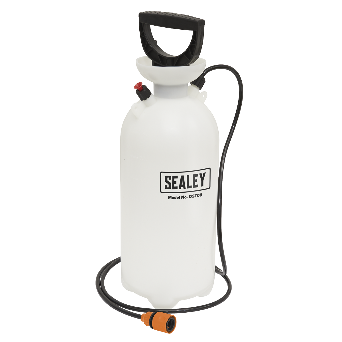 Dust suppression tank with 8L working capacity. Effective at suppressing dust while using cut-off saws, bench saws and floor saws in all working environments. Automatic pressure release valve stops pressure building higher than 3bar for optimum use. Includes 3m hose with quick release coupling.