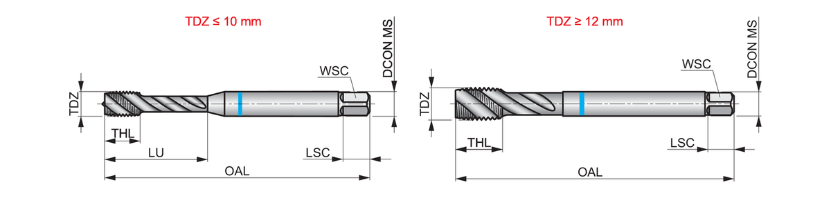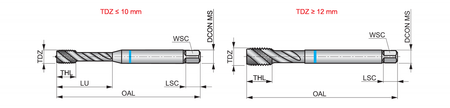- Type M Machine Tap Spiral Flute 40°, Back Tapered, Blue Shark