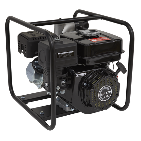 Economically designed petrol powered water pump with recoil starting. Suitable for on site applications where mains power supply is not available. Featuring Ø50mm inlet/outlet with 28m pumping head, offering a high flow rate up to 600L/min of water. Fitted onto frame with high-density rubber shock absorbers, frame also aids with protection from accidental damage.