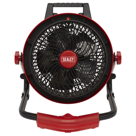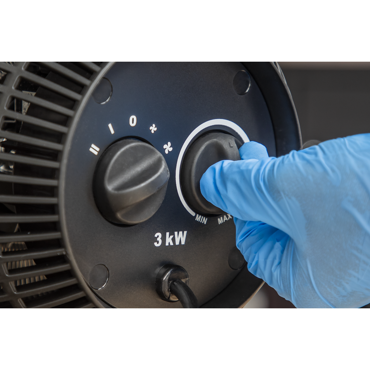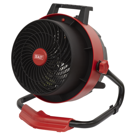 • Portable industrial heater with two heat settings and one setting for air movement only.