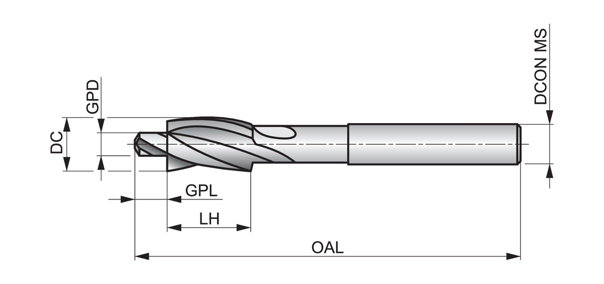 Counterbore with 3-flutes, diameter 10.00mm with an overall length of 80mm and a flute length of 18mm and 8mm straight shank, according to DIN 373 standard to produce a counterbore with the aid of a non-drilling pilot with a diameter of 5.50mm for normal fit clearance for M5, HSS with standard bright finish for machining free machining and plain carbon steel, wrought and copper or copper alloys