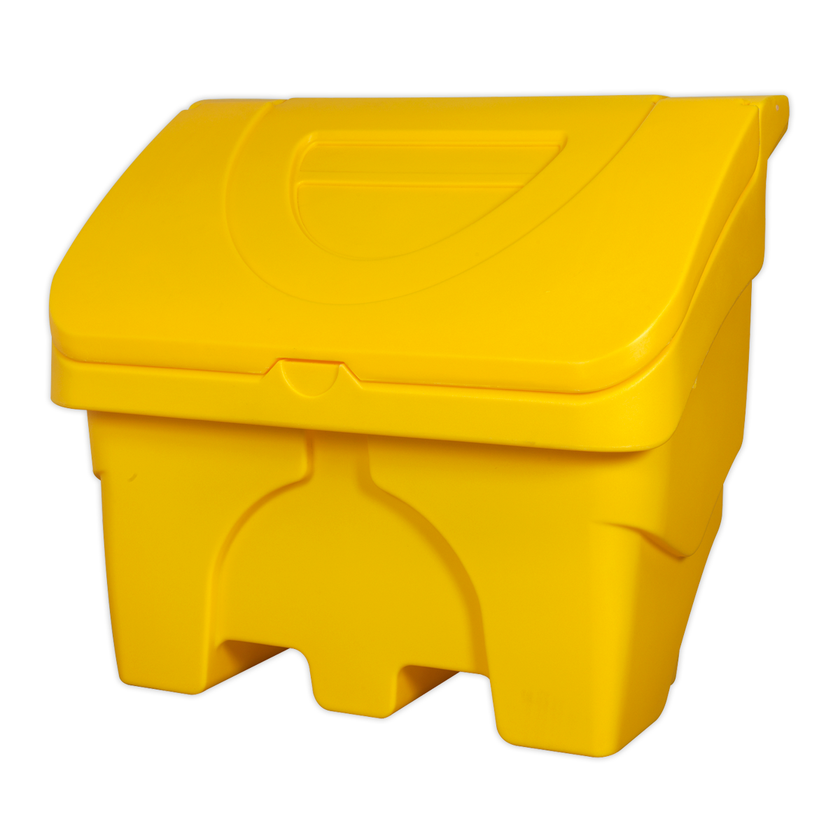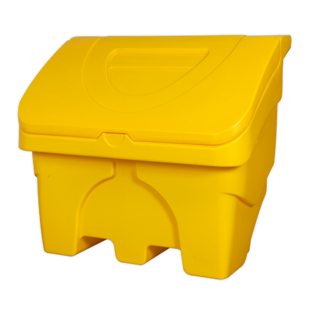 Manufactured from hard-wearing polyethylene. Ideal for indoor and outdoor storage of grit, sand and salt. Angled lid forces water to run off, keeping contents dry. Features large opening for easy-access. Compatible with most pallet trucks.
