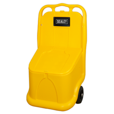 Manufactured from hard-wearing chemical and weather resistant polyethylene. Features a 75L capacity storage tank ideal for a variety of materials including grit, salt, sand, logs and oil absorbents. Fitted with composite wheels and ergonomic handle for easy manoeuvrability. Large clip securely holds lid open to provide easy-access. Angled lid forces water to run off, keeping contents dry.