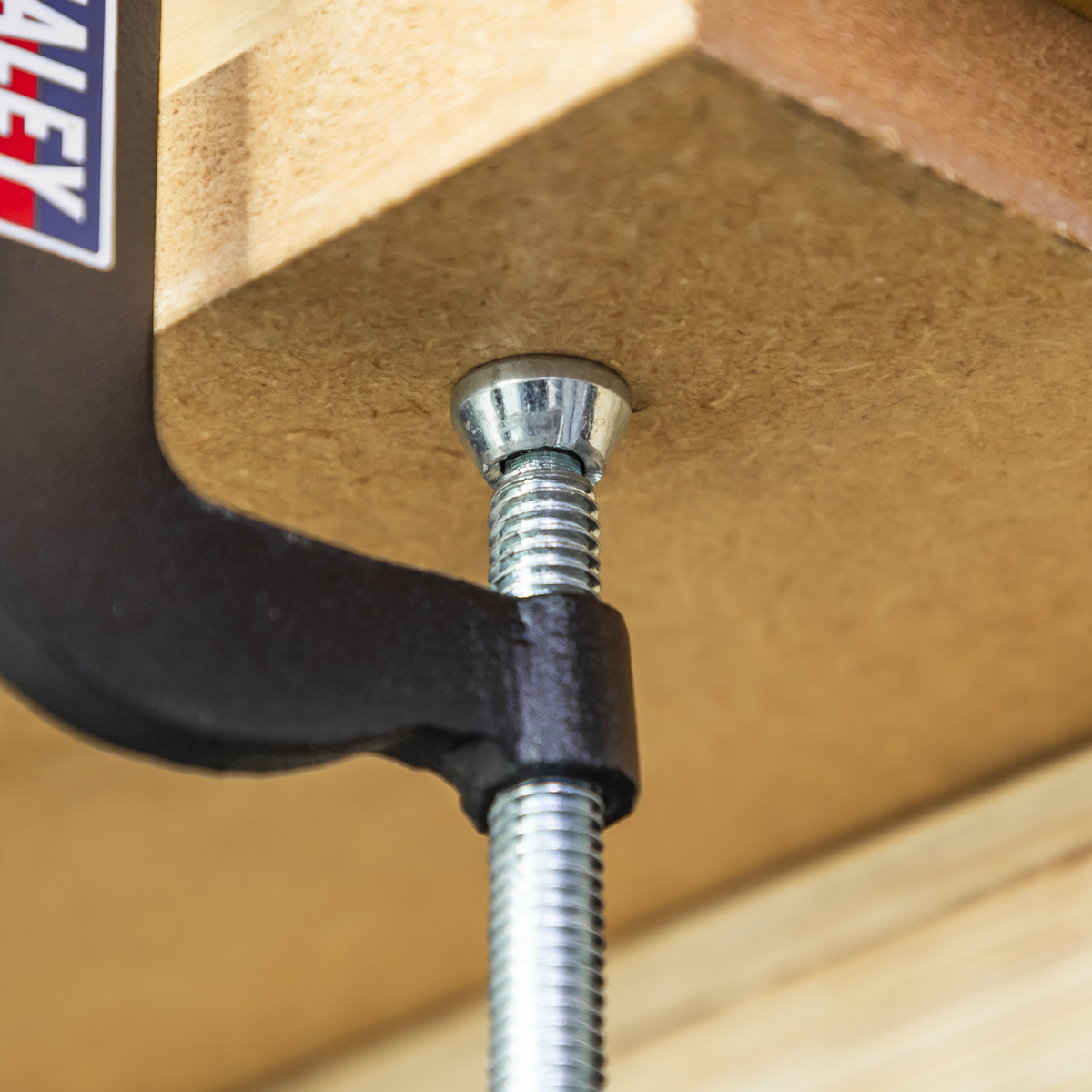 4pc set with 51mm jaw opening, and 32mm throat depth. Securely hold parts for assembly, fastening, gluing, woodworking, building, automotive, modelling and metalworking. Easy adjustment without sticking or binding. Manufactured from drop forged steel. T-Grip for easy adjustment without sticking or binding. Durable Zinc plated spindles. Tough Powder coated finish. Floating swivel jaw pads avoids damage to work.