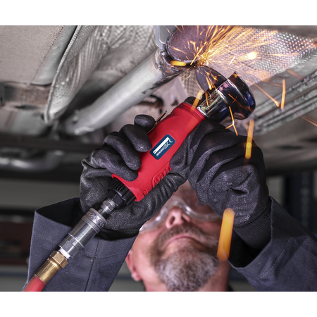 Generation Series air cut-off tool. Contoured handle insulates user from chill and vibration. Metal disc guard and rear air exhaust can be rotated 360°, giving operator added protection. Includes throttle safety device. Cutting disc not included.