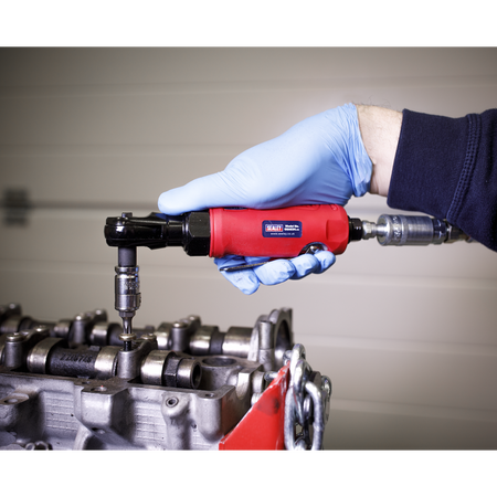 Generation Series compact air ratchet wrench. Contoured handle to insulate user from chill and vibration. Finger operated trigger and textured grip allows added control, even with greasy hands. Ideal for working in engine bays or other places with restricted access.