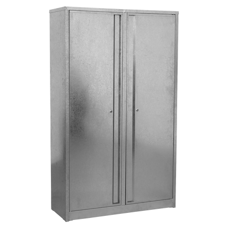 • Floor standing galvanized steel cabinet with lockable double doors.