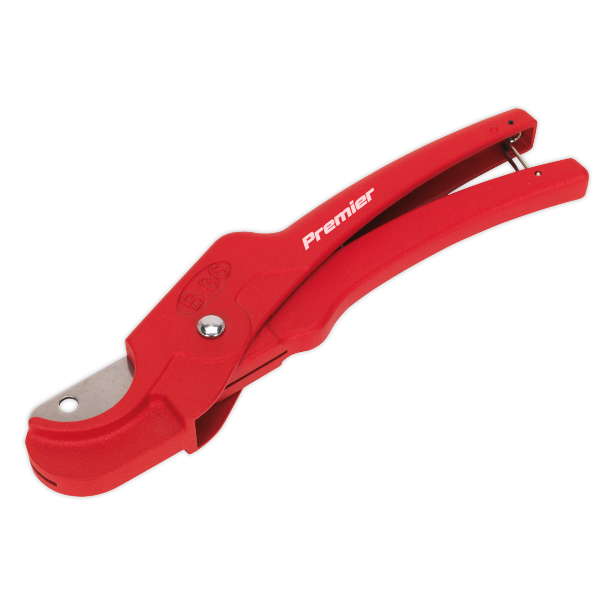 Powder coated aluminium body. Operates with a simple plier action. Heat treated stainless steel cutting blade. Locking mechanism for safe storage. Suitable for hoses from Ø3-36mm.