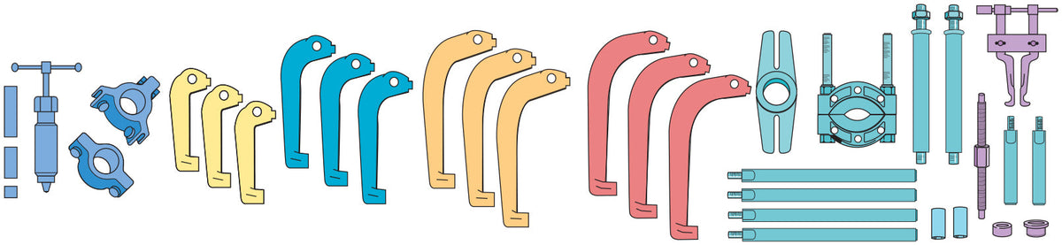 - Makes 8 different twin/triple leg pullers, plus heavy duty bearing separator kit and internal extractor kit