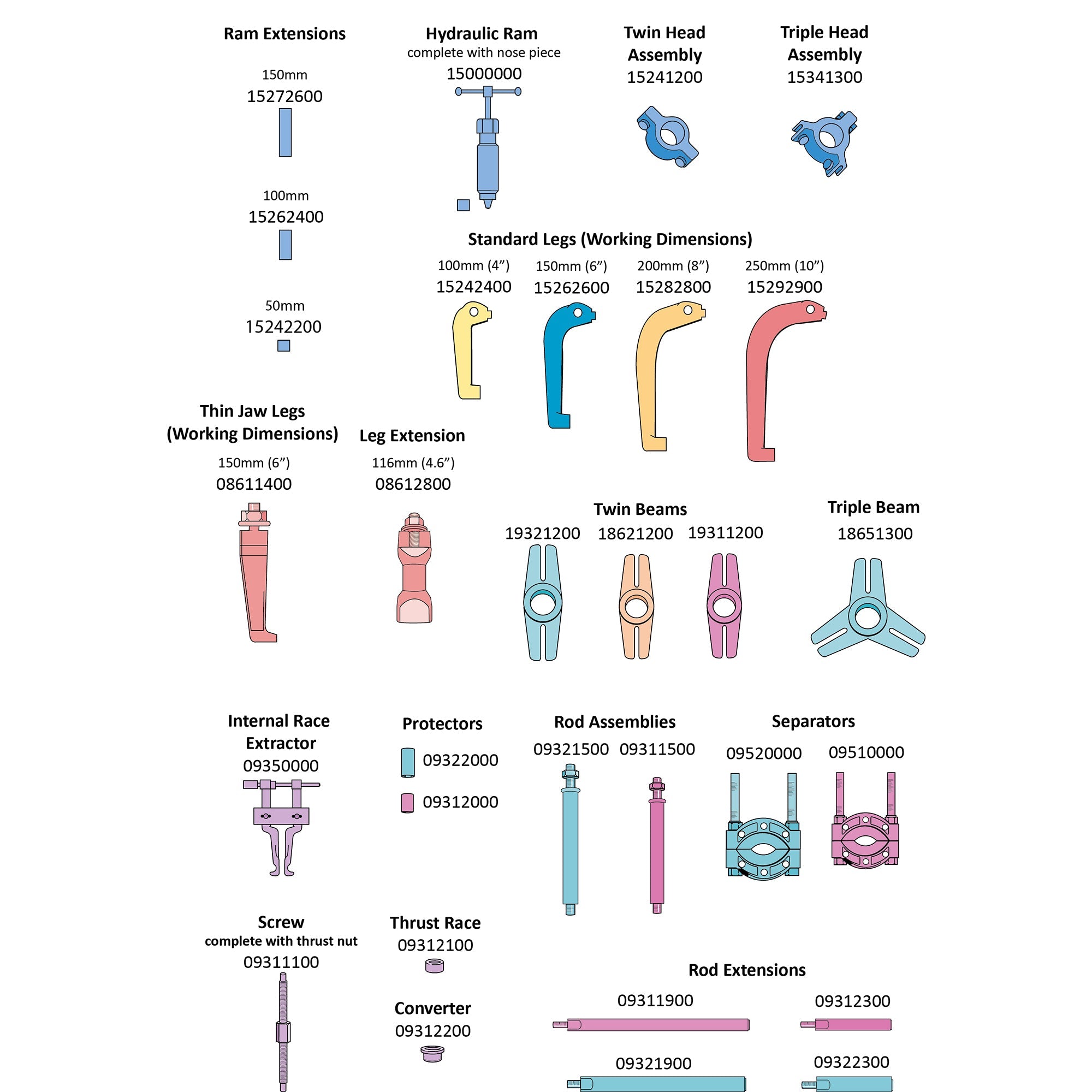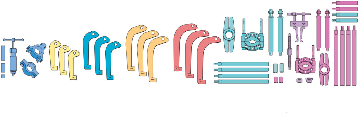 - Makes 8 different twin/triple leg pullers, plus heavy duty bearing separator kit and internal extractor kit