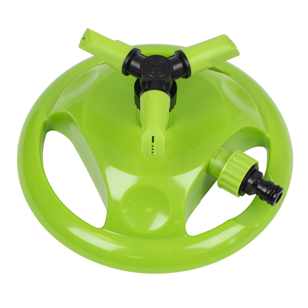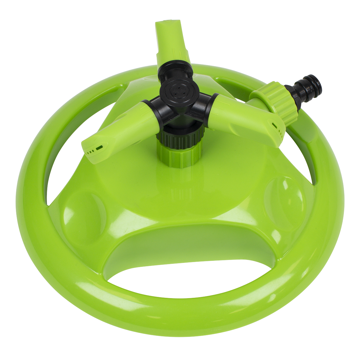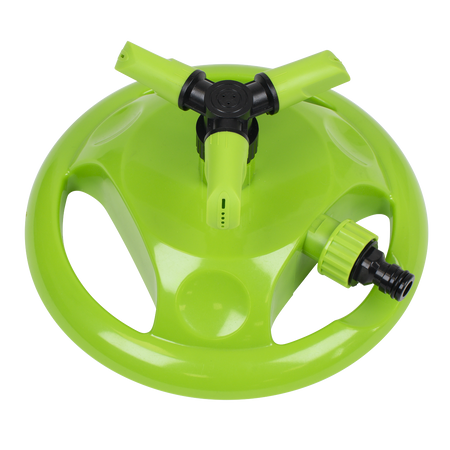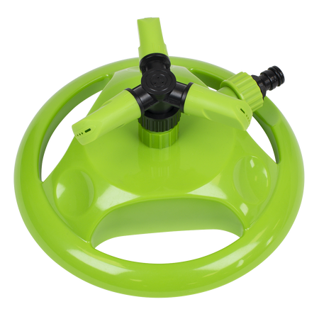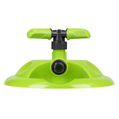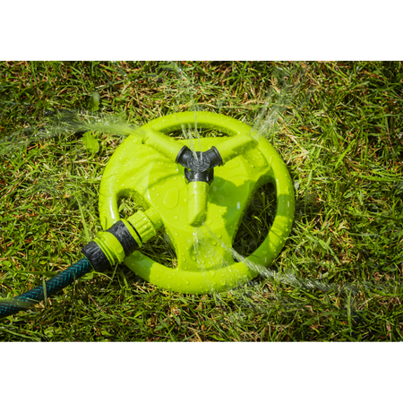 Offering adjustments from 90° to 45° to alter speed and coverage of the sprinkler. Covers a maximum diameter of Ø10m. Fitted with standard push-fit hose connection compatible with all universal hose connectors. Durable plastic base is stable while in use but very easy to relocate to cover the whole lawn.