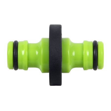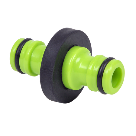 Universal connector for joining water hoses. Can be used to extend the length of a garden hose by attaching two hoses together, or use as a temporary repair solution. Fitted with standard push-fit hose connection compatible with all universal female hose connectors. Manufactured from hard-wearing ABS plastic.