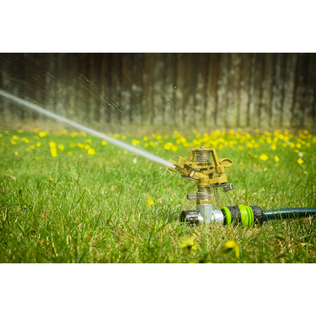 • ADJUSTABLE SPRAY PATTERN - Pulsating sprinkler offers semi-circle to full circle coverage with 360° range. Also features adjustment for jet or fan spray.