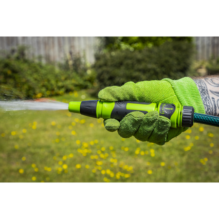 Set includes: Deluxe Adjustable Hose Nozzle, 1/2" and 3/4" Tap Connector, Hose Connector, Waterstop Hose Connector. Easy to adjust spray gun with jet and fan spray settings. Ergonomic design with rubber handles for maximum comfort during use. Fitted with standard push-fit hose connection compatible with all universal hose connectors. Manufactured from ABS plastic, thermoplastic rubber and brass.
