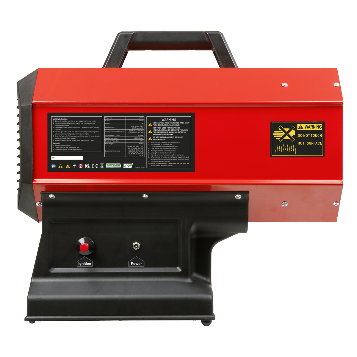 • EFFECTIVE OUTPUT - 30,000-68,000Btu/hr (9-20kW). Heats area of up to 350m³. Cordless functionality, ideal for where mains power is not accessible.