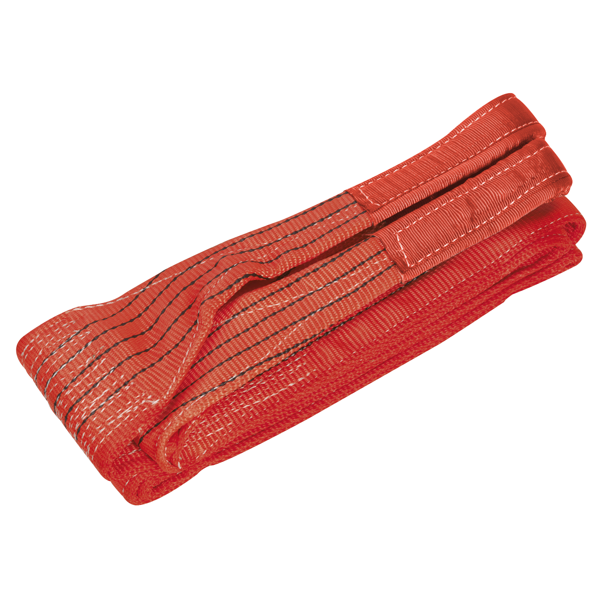 Weight-for-weight, this strap is three to five times stronger than chains and has the advantage that overload can be detected early by the fraying of the straps. Manufactured from 100% high strength polyester with reinforced lifting eyes. Colour-coded according to European standards for identifying the sling's capacity. Safe working load ratings quoted are for a load between the loop eyes (U configuration) and a load at one end (Straight configuration).