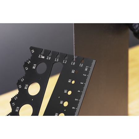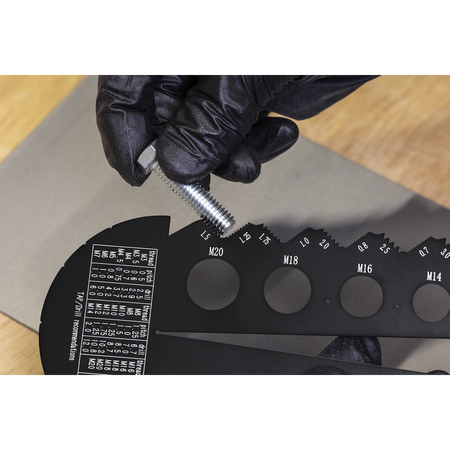 • Stainless steel metric multifunction thread/pitch identification gauge.