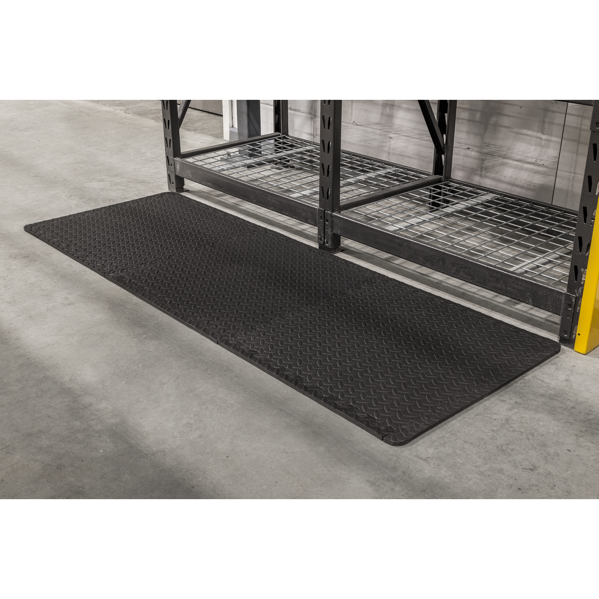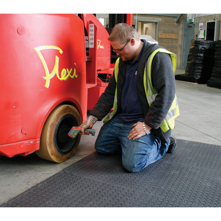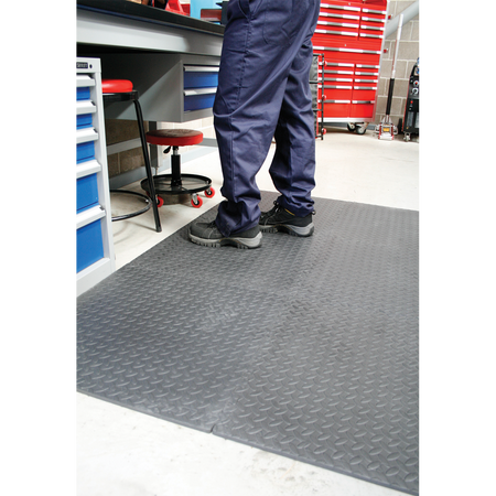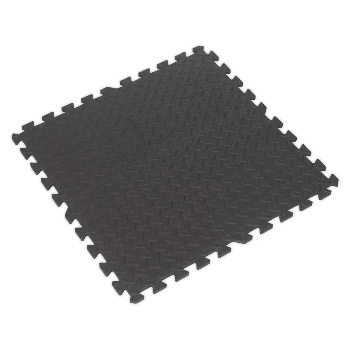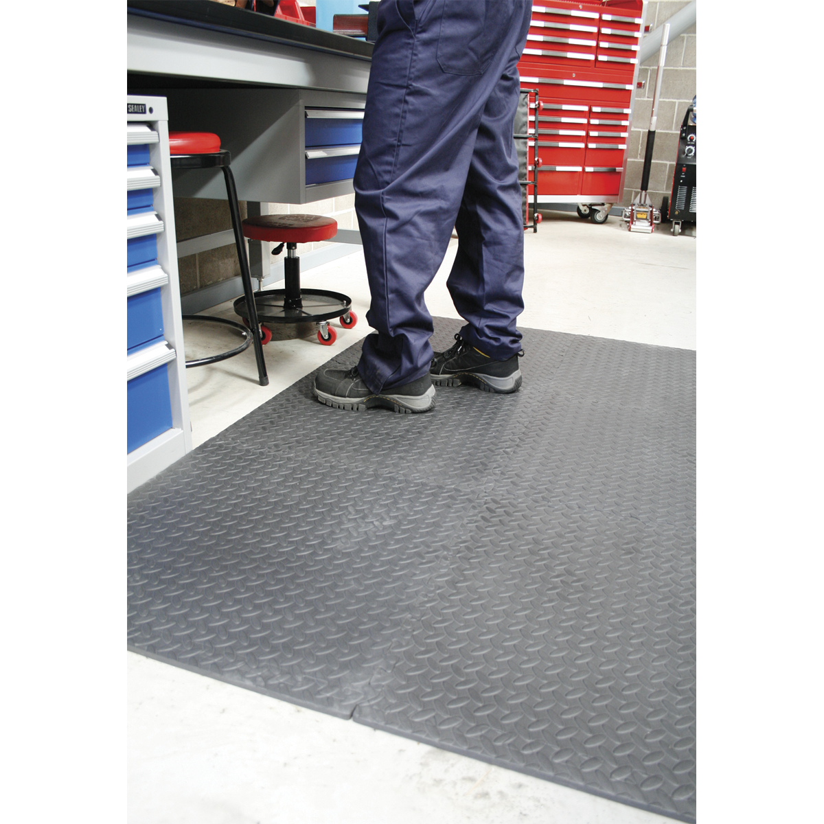 Hard-wearing anti-slip EVA foam matting suitable for use in the workshop and machine room. Provides fatigue relief and insulation from cold concrete floors. Interlocks to make any length in units of 600mm. End section edges to prevent damage.